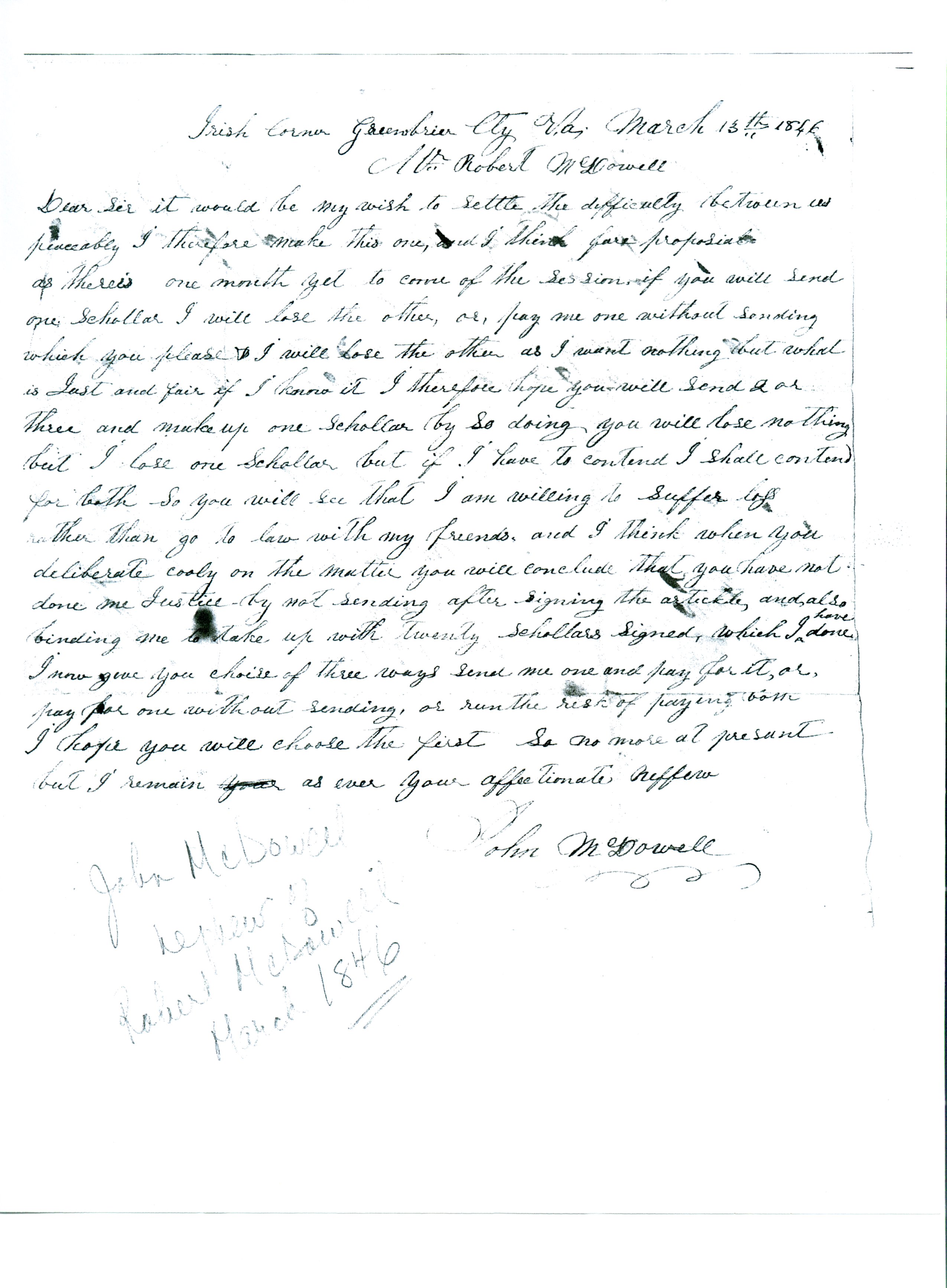 a John McDowell to his uncle Robert McDowell. I cannot place a Robert